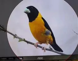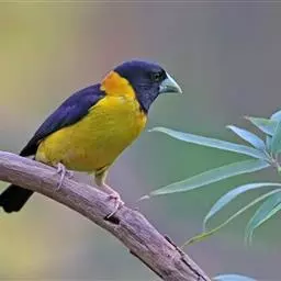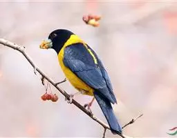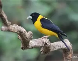 黄颈拟蜡嘴雀:小型鸟类,体长20-22厘米。嘴粗大,黑色。雄鸟整个头、颈、颏、喉和上胸辉黑色,…