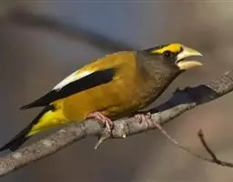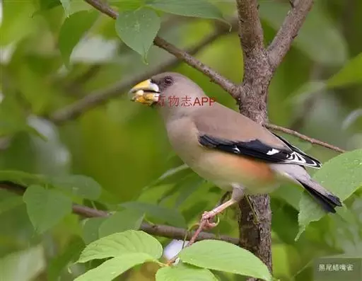 该雀英文名Cocothraustes migratorlus,又叫黑尾、包头蜡嘴、包头、皂儿、小桑嘴等别名。