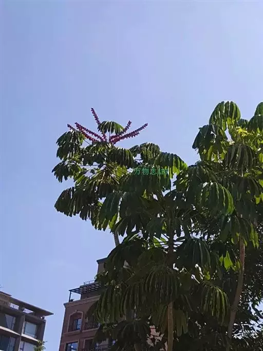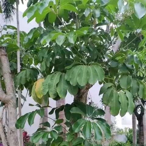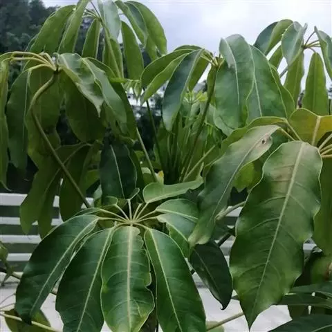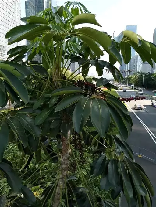 昆士兰伞木,吕松鹅掌柴 ,称昆石兰遮树,澳洲鸭脚木、方式叶鹅掌柴、伞树、大叶伞。叶片阔大,柔软下…