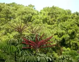 原产澳大利亚及太平洋中的一些岛屿。常绿乔木,高可达30~40米,叶为掌状复叶,柔软下垂,形似伞状,株形优雅轻盈,适于客厅与办公室等各种地方置放。我国南部热带地区亦有分布。