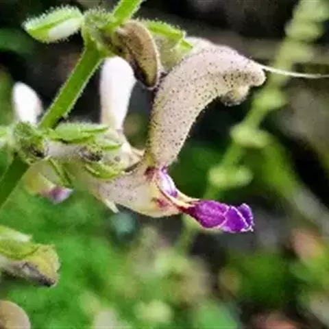 彩苞鼠尾草为唇形科、鼠尾草属一年生草本,株型直立,叶对生长椭圆形,色灰绿,叶表有凹凸状织纹,有香味,…