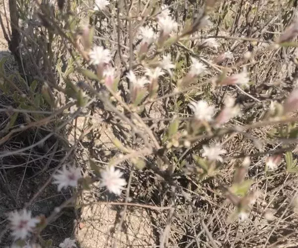 蚂蚱腿子(学名:Myripnois dioica Bunge)是菊科,蚂蚱腿子属落叶小灌木,高可达80厘米。枝多而细直,呈帚状,叶片纸质,椭圆形或近长圆形、阔披针形或卵状披针形,中脉两面均凸起,侧脉极纤弱,网脉密而显著,两面均凸起;叶柄被柔毛,头状花序,单生于侧枝之顶,总苞钟形或近圆筒形,总苞片内层与外层的形状相似,长圆形或近长圆形,花托小,不平,无毛,花雌性和两性异株,先叶开放;雌花花冠紫红色,舌状,两性花花冠白色,裂片极不等长,雌花花柱分枝外卷,瘦果纺锤形,雌花冠毛丰富,浅白色,5月开花。