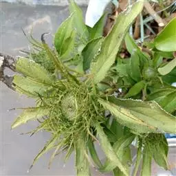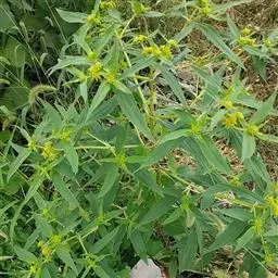 蚂蚱腿子 落叶小灌木,高60-80厘米。枝多而细直,呈帚状,具纵纹,被短柔毛。叶片纸质,生于短枝上的椭圆形或近长圆形,生于长枝上的阔披针形或卵状披针形,长2-6厘米,宽1-2厘米,顶端短尖至渐尖,基部圆或长楔尖,全缘,幼时两面被较密的长柔毛,老时脱毛;中脉两面均凸起,侧脉极纤弱,通常仅于基部的1对较明显,网脉密而显著,两面均凸起;叶柄长3-5毫米,被柔毛,短枝上的叶无明显的叶柄。
