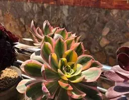 红缘莲花掌属蔷薇目、景天科植物,原产大西洋的加那利群岛。质厚,蓝绿色,被白霜,叶缘红褐色。聚伞花序,…