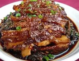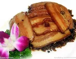 梅菜扣肉,汉族传统名菜,属客家菜 。制作材料有五花肉、梅菜、葱白、姜片等。