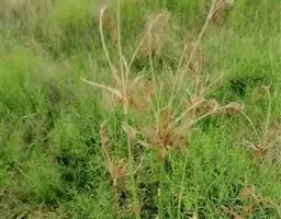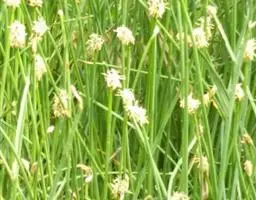 球穗藨草 多年生草本,散生,具匍匐根状茎和块茎,块茎小,呈卵形。秆高10-50厘米,三稜形,平滑,中部以上生叶。叶扁平,线形,稍坚挺,宽1-4毫米,在秆上部的叶长于秆或等长于秆,边缘和背面中肋上不粗糙或稍粗糙。