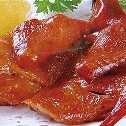 柠檬鸭 柠檬鸭的营养价值很高,可食部分鸭肉中的蛋白质含量约16%~25%,比畜肉含量高得多。鸭肉蛋白质主要是肌浆蛋白和肌凝蛋白。另一部分是间质蛋白,其中含有溶于水的胶原蛋白和弹性蛋白,此外还有少量的明胶,其余为非蛋白氮。肉食含氮浸出物越多,味道越鲜美。鸭肉中含氮浸出物比畜肉多,所以鸭肉味美。老鸭肉的含氮浸出物较幼鸭肉多,野鸭内含氮浸出物更多。鸭肉中的脂肪含量适中,约为7.5%比鸡高,比猪肉低,并较均匀地分布于全身组织中。脂肪酸主要是不饱和脂肪酸和低碳饱和脂肪酸,因此,熔点低,约为35℃,易于消化。