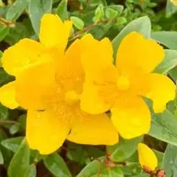 贯叶连翘 贯叶连翘分蘖能力较强,可在冬季或春季从老株边挖取带根的分蘖苗栽种,每株应有1-2个芽,一般应选阴雨天进行,并尽量多带泥土,随分随栽,以提高移栽成活率。栽种方法:在整好的畦面上,按行距20-25厘米的规格开横沟或直沟,沟深可根据种苗大小而定;将分株苗均匀地放入沟内,株距15-20厘米,用开第二沟的沟土覆于第一沟的种苗上,压实;栽后浇1次透水,栽植时若植株已展叶,应将叶片露出土表。