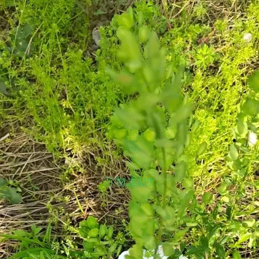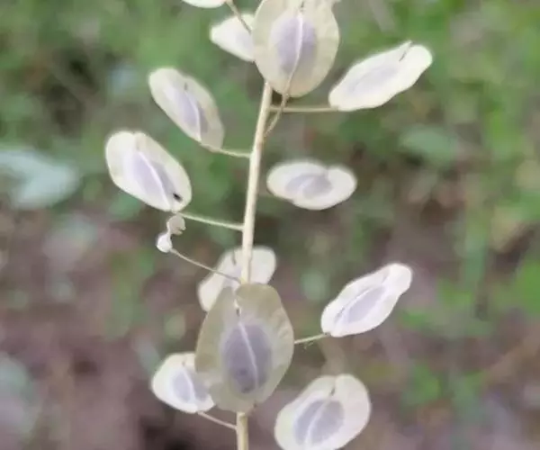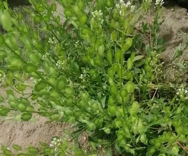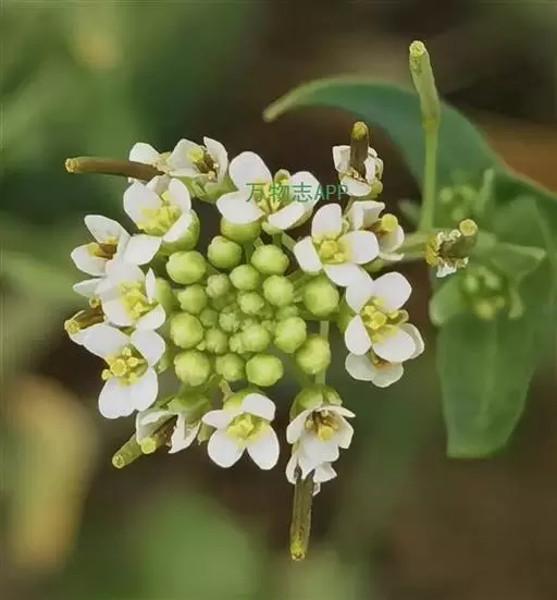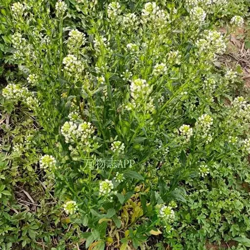 菥蓂(pennycress),一年生草本,高9-60厘米,无毛;茎直立,不分枝或分枝,具棱。基生叶倒卵状长圆形,长3-5厘米,宽1-1.5厘米,顶端圆钝或急尖,基部抱茎,两侧箭形,边缘具疏齿;叶柄长1-3厘米。总状花序顶生;花白色,直径约2毫米;花梗细,长5-10毫米;萼片直立,卵形,长约2毫米,顶端圆钝;花瓣长圆状倒卵形,长2-4毫米,顶端圆钝或微凹。