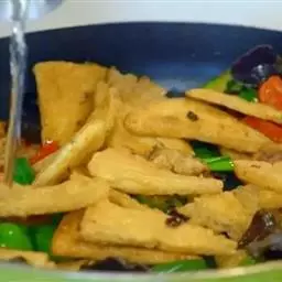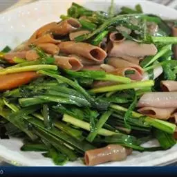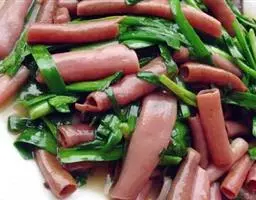 炸灌肠是一种老北京特有的传统风味小吃,属于京菜系。灌肠讲究用猪大肠中炼出的油炸制,因此正宗的炸灌肠闻起来总有一股猪大肠的特殊味道,但人们出于健康的考虑已经很少用猪大肠油来炸灌肠。炸灌肠的时候须先将成型的灌肠切片,在饼铛中炸至两面冒泡变脆,即取出浇上拌好的盐水蒜汁趁烫吃。