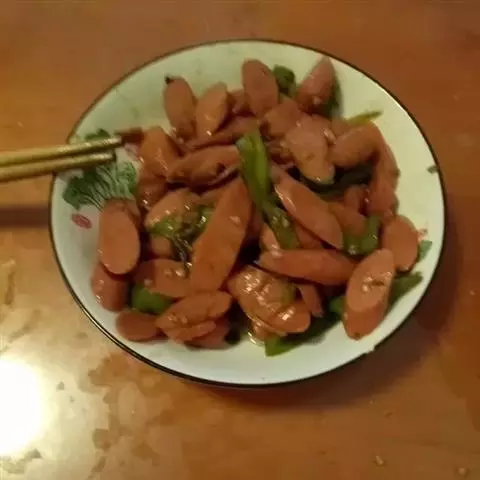 5.锅中倒油,油热后转成小火,放入灌肠。