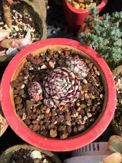 冬天温度低于3度就要逐渐断水,0度以下保持盆土干燥,尽量保持不低于零下5度,这样的温度基本就可以安全过冬了。花友平时浇水的时候尽量浇在土里,叶片沾上水分会影响美观,更不要浇到花芯,容易烂芯哦。小红衣生长很快,容易群生。