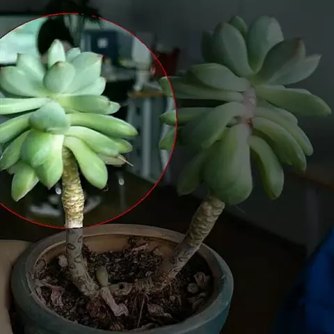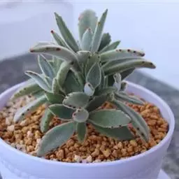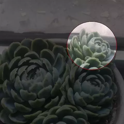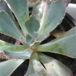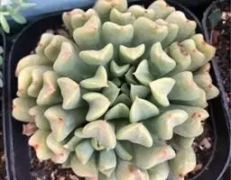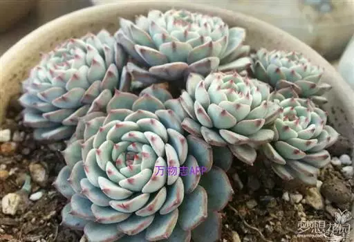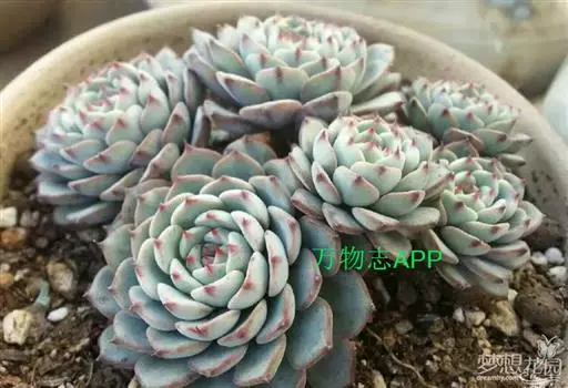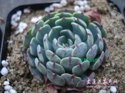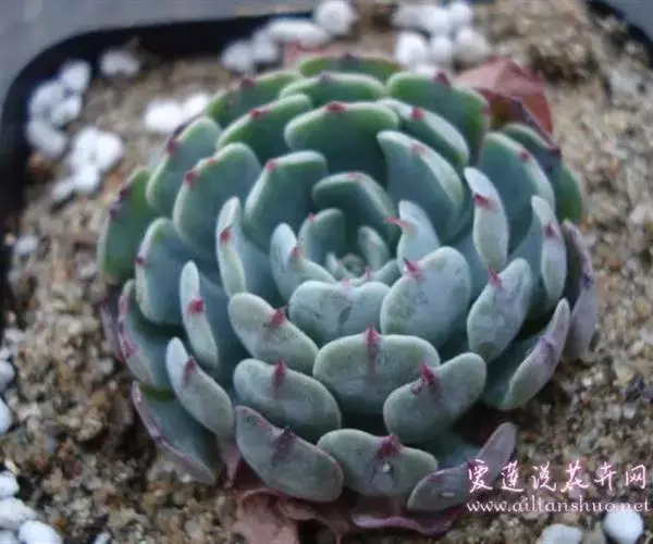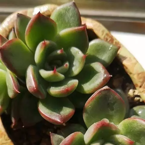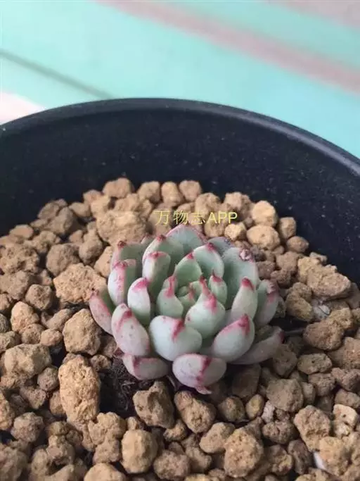 小叶片呈莲座状紧密排列,叶片呈微扁的卵形,叶尖两侧有突出的薄翼。强光下,叶缘和叶尖会呈现出漂亮的红色,是很好的观赏植物