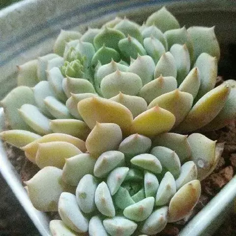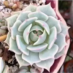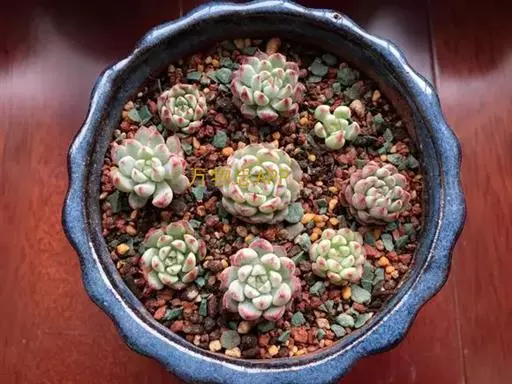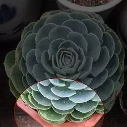 大和锦是景天科拟石莲花属的多肉植物。肉质叶排成紧密的莲座状,广卵形至散三角卵形,背面突起呈龙骨状,…