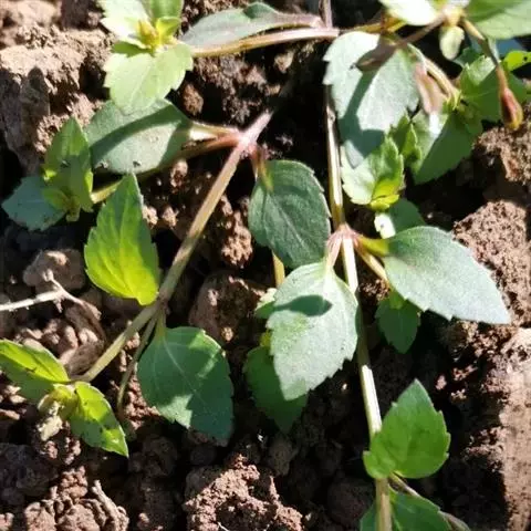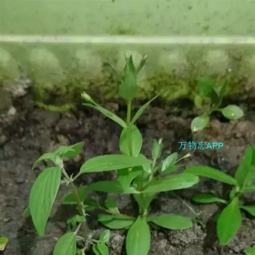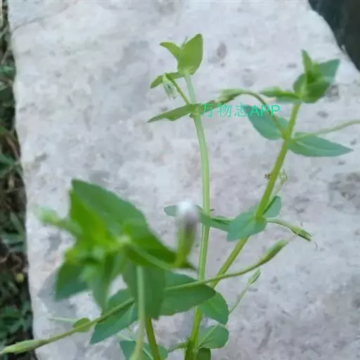 直立草本,根细密成丛;茎高5-20厘米,基部多分枝,无毛。叶无柄;叶片椭圆形至矩圆形多少带菱形,长1-2.5厘米,宽6-12毫米,顶端钝至圆头,全缘或有不明显的钝齿,两面无毛,叶脉并行,自叶基发出3-5条。花单生于叶腋,花梗纤细,长1.2-2厘米,比叶长,无毛;萼仅基部联合,齿5,条状披针形,长约4毫米,顶端钝头,外面微被短毛;花冠粉红色或紫色,长5-7毫米,管长约3.5毫米,向上渐扩大,上唇短,长约1毫米,2浅裂,下唇甚大于上唇,长约3毫米,3裂,侧裂椭圆形较小,中裂圆形,向前突出;雄蕊4,全育,前方2枚雄蕊的附属物腺体状而短小;花药基部微凹;柱头2裂。蒴果球形或卵球形,与萼近等长或略过之,室间2裂;种子多数,有格纹。花期7-10月,果期9-11月。