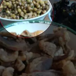 材料:流行包半颗 五花肉适量 蒜和干辣椒少许。