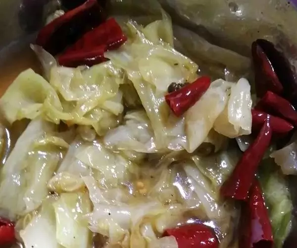主料:包菜、蒜瓣、干红椒丝、淀粉水、花椒粒、