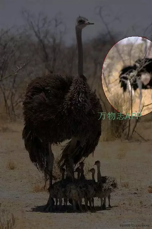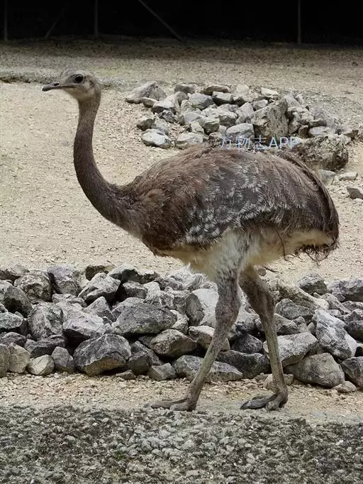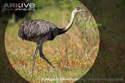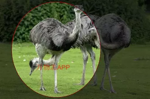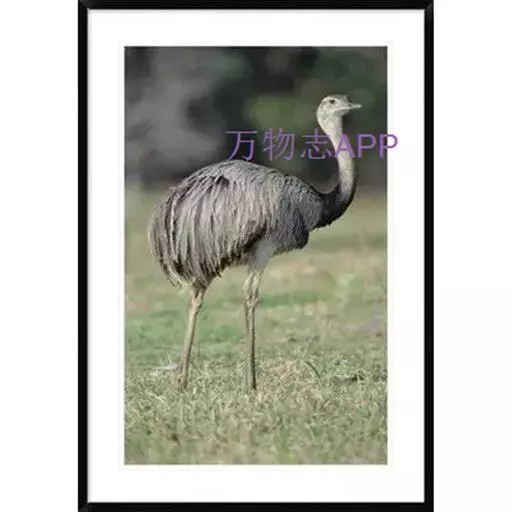 其形态很象非洲鸵鸟,它也有一只细长的腿、细长的头颈,弧形的背脊、徒有其名的翅膀,也是过着一雄多雌的群体生活,雌鸟管生蛋,雄鸟管孵卵。但是它和非洲鸵鸟有区别,一是其脚爪为3趾,而非洲鸵鸟为2趾,二是形体比非洲鸵鸟小,高度通常为1.5米,重20千克,三是羽毛没有非洲鸵鸟长。羽色多按身体部位而异,有的是油滑的棕色,有的是黑色和灰色。