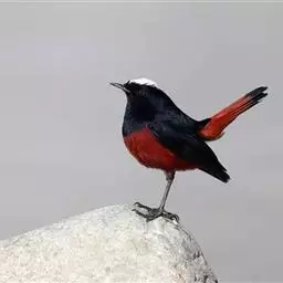 藏朱雀:全长约17-18厘米。雄鸟头部深红色具光辉,喉部暗红色具白色点斑;背部灰白色,各羽具玫瑰红…