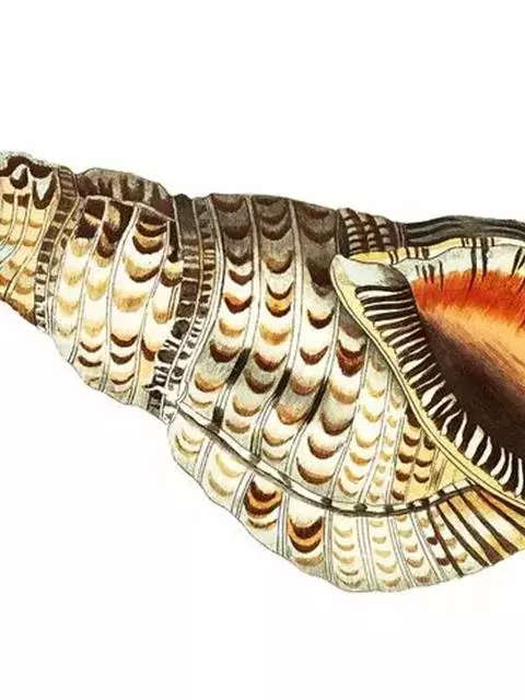 法螺:也称大法螺。贝壳大。壳高351.0毫米,壳宽170.0毫米。螺层约10层。缝合线浅。螺旋部高,…