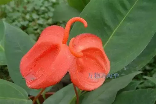 火鹤花(Anthurium scherzerianumSchott)天南星科花烛属多年生草本。有佛焰花序,叶形苞片,常见的苞片颜色有红、粉红、白等,有其花落时也可观叶。