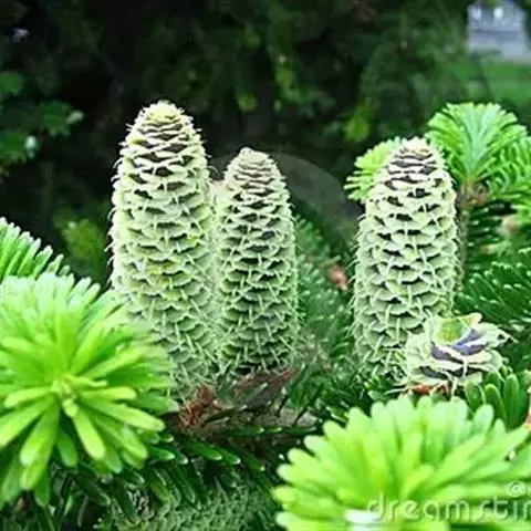 日本冷杉种子10月下旬成熟,选生长健壮、无病虫害的母树采种,当果由青绿变为褐青时,种子成熟,应及时采收。可用长竹竿打落收集,装袋运回,摊于地上日晒,切忌阴干,每日翻动数次,至鳞片松驰张开种子大部分脱落为止,除杂后通风阴干2天,再装入细篾筐中,采用冷库贮藏。贮藏温度为4-6℃。发芽率在25-30%之间。