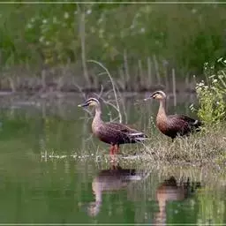 斑嘴鸭是雁形目鸭科鸭属鸟类。李文华,旭日干,中国自然资源通典 辽宁卷,内蒙古教育出版社,2015,第361页雄鸟体羽大部棕褐色;嘴蓝黑色,先端黄色,嘴基至耳区贯眼线黑褐色;虹膜黑褐色,外圈橙黄色;眉纹黄白色,头顶、额、枕部暗棕褐色;上背灰褐色,下背褐色;翼镜蓝绿色带紫色金属光泽;胸部棕白色杂褐色斑,腹褐色;腰、尾上覆羽、尾羽黑褐色,尾下覆羽黑色;跗蹠和趾棕黄色,爪黑色。雌鸟嘴端黄斑不明显,下体自胸以下淡白色,杂暗色斑。因嘴端有黄斑而得名。斑嘴鸭分布于中国各省区,栖息于河流、湖泊、水塘及沼泽等湿地中。善游泳、行走,游泳时尾露出水面,除繁殖期外,常成群活动,也和其他鸭类混群。主食植物的种子、嫩芽和幼苗等植物性食物,也食昆虫、软体动物等动物性食物。繁殖期5—7月,以干草和绒羽在岸边草丛中做巢,1年繁殖1窝,每窝产卵8—14枚,孵化期24天。斑嘴鸭被列入中国国家林业局2000年8月1日发布的《国