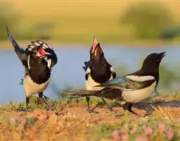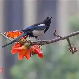 喜鹊:是鸦科、鹊属的一种鸟类。共有11个亚种。体长40-50厘米,雌雄羽色相似,…