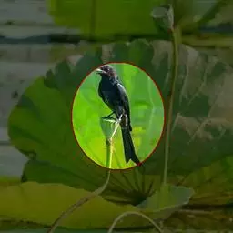 发冠卷尾是中型鸟类,体长28-35厘米。通体绒黑色缀蓝绿色金属光泽,额部具发丝状羽冠,…