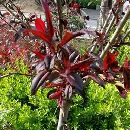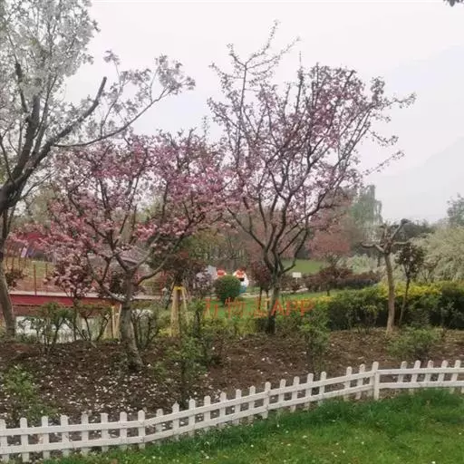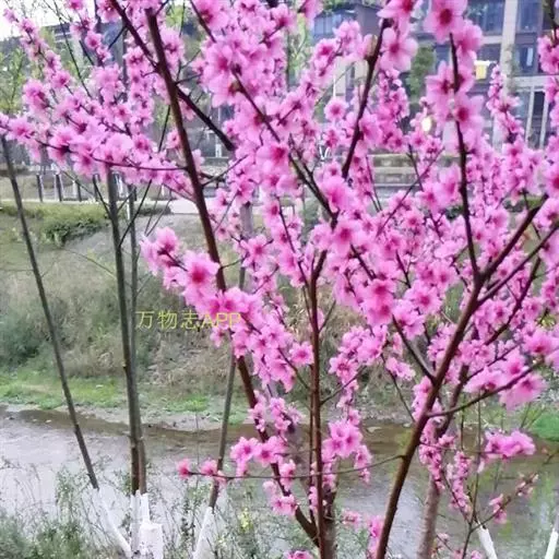 美人梅(学名:Prunus × blireana cv. Meiren):落叶小乔木或灌木,法国引进。由重瓣粉型梅花与红叶李杂交而成。落叶小乔木。叶片卵圆形,长5~9厘米,叶柄长1-1.5厘米,叶缘有细锯齿,叶被生有短柔毛,花色浅紫,重瓣花,先叶开放,萼筒宽钟状,萼片5枚,近圆形至扁圆,花瓣15-17枚,小瓣5-6梅,花梗1.5厘米,雄蕊多数,自然花期自3月第一朵花开以后,逐次自上而下陆续开放至4月中旬。紫红色。花粉红色,繁密,先花后叶。花期春季。喜阳光充足、通风良好、开阔的环境。要求土层深厚、排水良好、富含有机质的土壤。嫁接、压条、扦插繁殖。优良的园林观赏、环境绿化的树种。