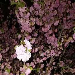 花多,花艳,花期早 经过正常修剪的美人梅,最多一株可开花450朵,花开浅紫花色浓而不艳,冷而不淡。花期正值少花的早春。若行盆栽,还可人工控制花期到“五一”节开放。