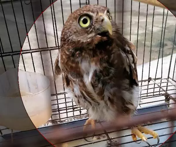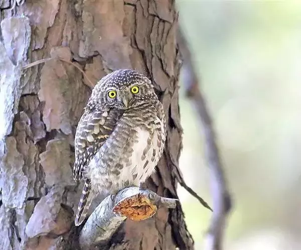 斑头鸺鹠的虹膜黄色,嘴黄绿色,基部较暗,蜡膜暗褐色,趾黄绿色,具刚毛状羽,爪近黑色。
