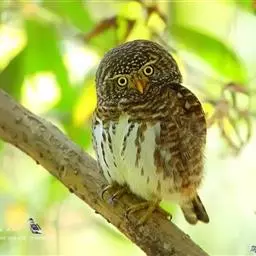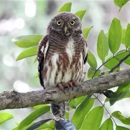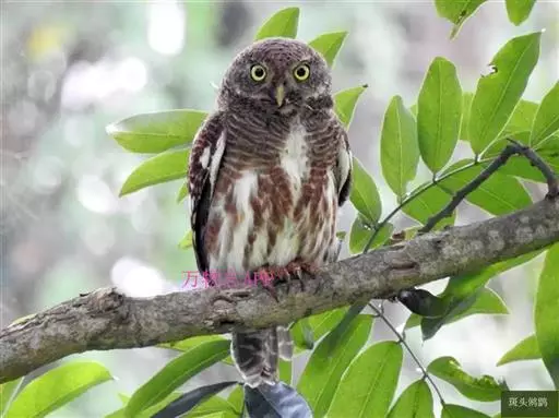 斑头鸺鹠(学名:Glaucidium cuculoides),是鸱鸮科、鸺鹠属的鸟类。斑头鸺鹠为小型鸮类,体长20-26cm,是鸺鹠中个体最大者,面盘不明显,无耳羽簇。体羽褐色,头和上下体羽均具细的白色横斑;腹白色,下腹和肛周具宽阔的褐色纵纹,喉具一显著的白色斑。