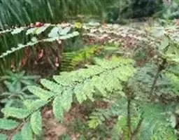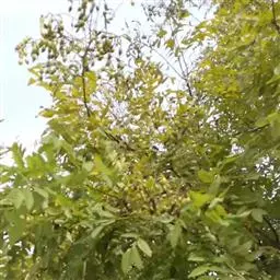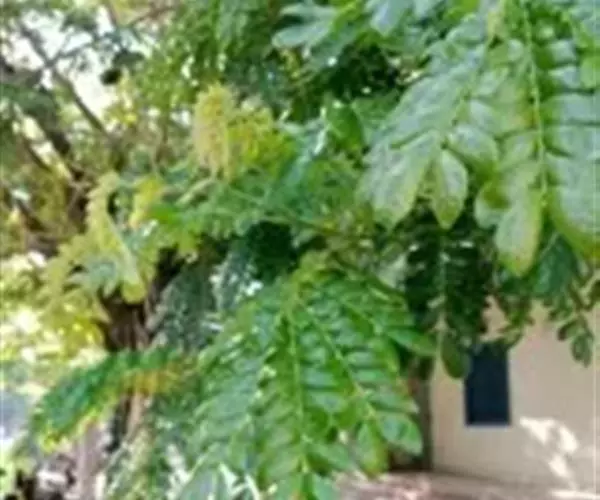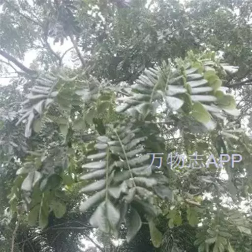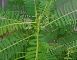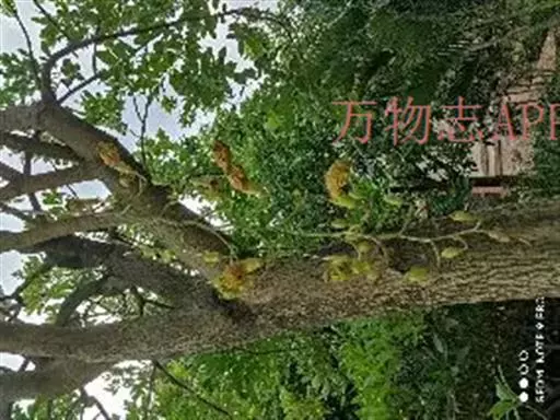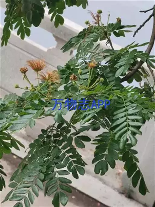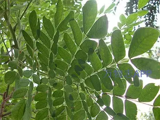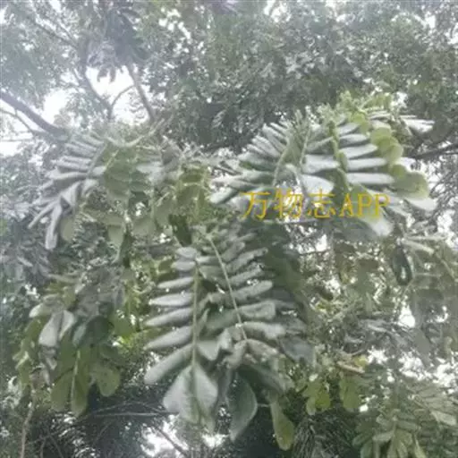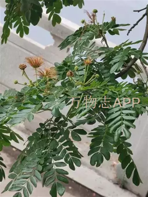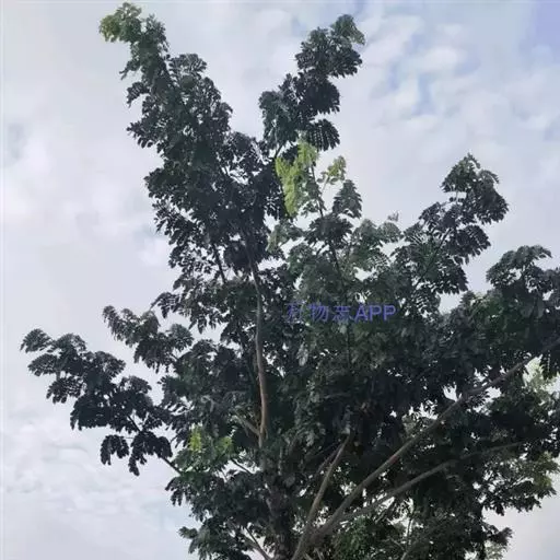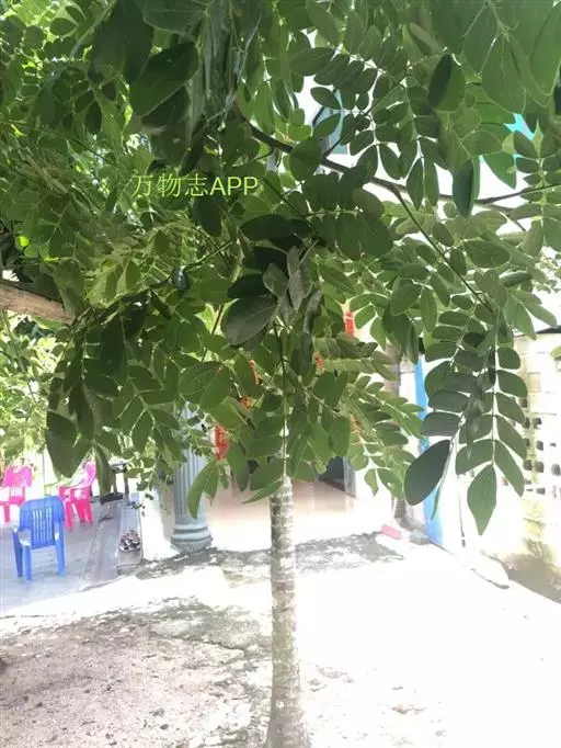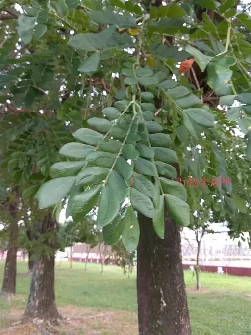 无刺大乔木;树冠极广展,干高10-25米,分枝甚低;幼嫩部分被黄色短绒毛。羽片3-5(-6)对,长达15厘米;总叶柄长15-40厘米,羽片及叶片间常有腺体;小叶3-8对,由上往下逐渐变小,斜长圆形,长2-4厘米,宽1-1.8厘米,上面光亮,下面被短柔毛。