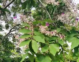 雨树(学名:Samanea saman (Jacq.) Merr.)是豆科雨树属植物,无刺大乔木;树冠极广展,干高10-25米,分枝甚低;总叶柄长15-40厘米,羽片及叶片间常有腺体。花玫瑰红色,组成单生或簇生、直径5-6厘米的头状花序,生于叶腋。果瓣厚,绿色,肉质,成熟时变成近木质,黑色;种子约25颗,埋于果瓤中。花期8-9月。