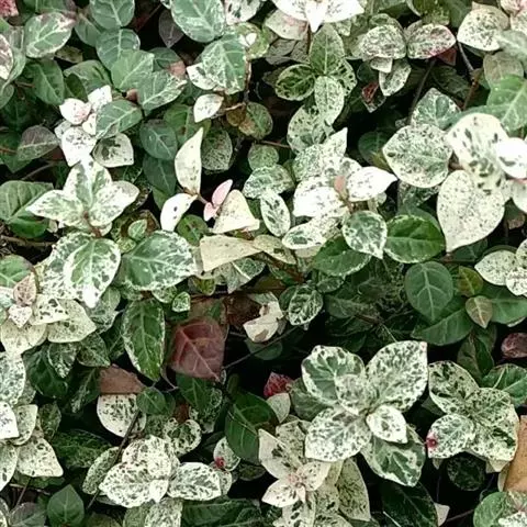 五彩络石为常绿蔓性藤本植物。匍匐生长,茎具白色乳汁,叶对生,革质,卵形,长3厘米,宽2厘米。喜阳耐…