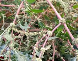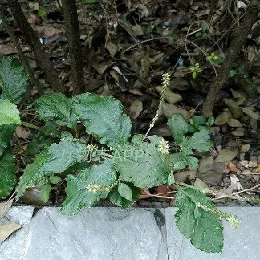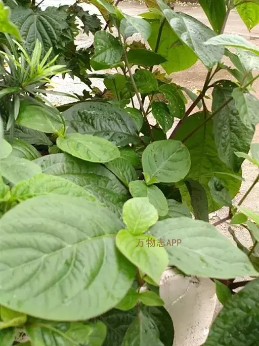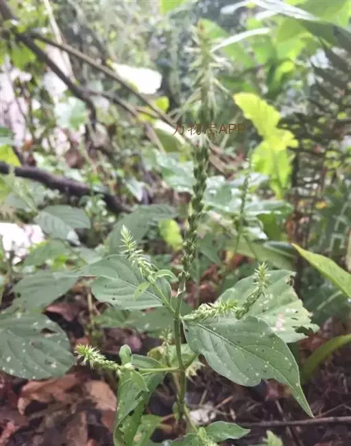 4、植物钝叶土牛膝,茎密生白色或黄色长柔毛。叶片倒卵形,长1.5~6.5厘米,宽2~4厘米,顶端圆钝,常有凸尖,基部宽楔形,边缘波状,两面密生柔毛。