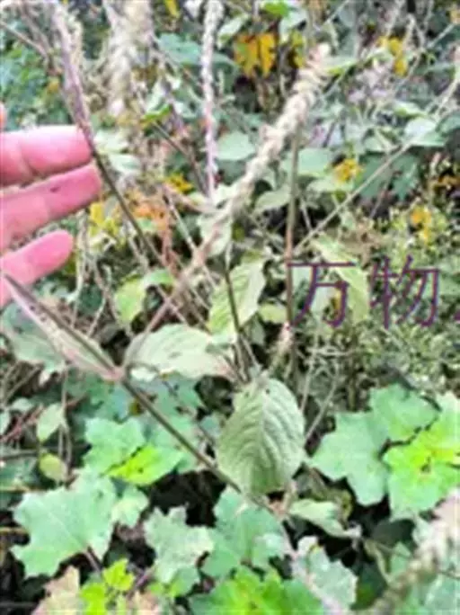 3、植物粗毛牛膝,别名土牛膝,多年生草本,高20~120厘米;根细长,直径3~5毫米,土黄色;茎四棱形,有柔毛,节部稍膨大,分枝对生。叶片纸质,宽卵状倒卵形或椭圆状矩圆形,长1.5~7厘米,宽0.4~4厘米,顶端圆钝,具突尖,基部楔形或圆形,全缘或波状缘,两面密生柔毛,或近无毛;叶柄长5~15毫米,密生柔毛或近无毛。穗状花序顶生,直立,长10~30厘米,花期后反折;总花梗具棱角,粗壮,坚硬,密生白色伏贴或开展柔毛;花长3~4毫米,疏生;苞片披针形,长3~4毫米,顶端长渐尖,小苞片刺状,长2.5~4.5毫米,坚硬,光亮,常带紫色,基部两侧各有1个薄膜质翅,长1.5~2毫米,全缘,全部贴生在刺部,但易于分离;花被片披针形,长3.5~5毫米,长渐尖,花后变硬且锐尖,具1脉;雄蕊长2.5~3.5毫米;退化雄蕊顶端截状或细圆齿状,有具分枝流苏状长缘毛。胞果卵形,长2.5~3毫米。种子卵形,不扁压,长约2毫米,棕色。花期6~8月,果期10月。
