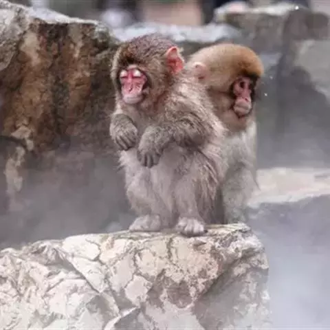猴子的一家 每年秋季是金丝猴的发情期,性成熟期雌性早于雄性,雌约4~5岁,雄猴迟到7岁左右。全年均有交配,但8~10三个月为交配盛期,孕期6个月左右,多于3~4月产仔,个别也有在2月或5月产仔的。雌猴妊娠期为6个月左右,通常一胎一仔,偶产二仔。刚生下的小猴子脸呈暗蓝,毛色棕褐,叫声如婴儿哭泣,一个月后体重就达一公斤多,成年猴群中,雄雌性比约为1:2。