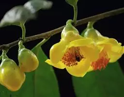 凹脉金花茶,是山茶科山茶属的灌木;嫩枝有短粗毛,老枝变秃;叶革质,椭圆形,先端急尖,…