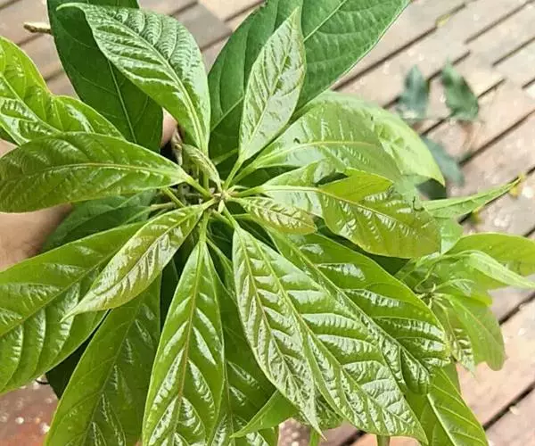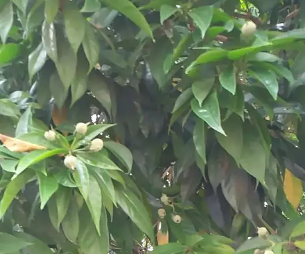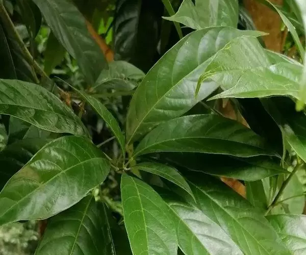乔木,高达25m;幼嫩枝、叶疏生微星状毛,后变无毛。叶纸质,椭圆形,长圆状椭圆形或披针形,长6-22cm,宽1.5-6cm,顶端渐尖,稀急尖,基部楔形;小托叶2枚,钻状,长0.5mm,上部凋萎,基部稍膨大,干后黑色;叶柄长1-4cm,顶端枕状,基部具叶枕;托叶钻状,长1.5-2.5mm,有时基部外侧有1个腺体。