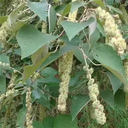 圆锥状花序,长10-15cm,各部均密生灰黄色微星状毛,雄花7-13朵密集成的团伞花序,疏生于花序轴,雌花1-6朵,生于花序的基部或中部;苞片披针形,长2-4 (-8)mm,小苞片钻状,长约1mm;雄花:花萼裂片(3-) 4-5枚,长1.5-2mm;雄蕊(3-) 4-5枚,花丝长3-5mm,花药长约0.5mm;不育雌蕊柱状,长约1mm;花梗短或几无;雌花:萼片5-8枚,卵状椭圆形或阔披针形,长3-5mm;被短绒毛;副萼5-8枚,披针形或鳞片状,长1-4mm,早落;子房被短绒毛,2室,通常1室发育,1室仅具痕迹,花柱长约7mm,上部3-5裂,裂片叉裂为2-3枚短裂片,密生小乳头。
