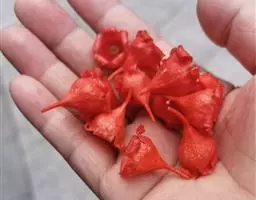 选择20-50年生长健壮、结果多、果实大、果皮薄的优良类型作采种母树。8月中下旬果皮由灰青色变为青黄色,种壳黑褐色,是种子成熟的表现,此时可采摘果实。果实采回后置室内1-2天,待果实微裂后人工剥开果实,取出种子。出籽率60%,种子千粒重12000g。种子不宜久藏,不宜晒干或风干,应随采随播。需要短暂贮藏或远途调运时,须带果壳装入竹篓内,一周内发芽率尚可保持在70%左右。