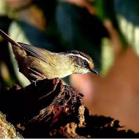 纹喉凤鹛:小型鸟类,体长13-16厘米。头顶和羽冠暗褐色或褐灰色,上体橄榄褐色,飞羽黑褐色,…