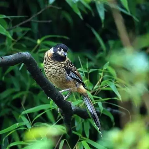 黑顶噪鹛:中型鸟类,体长24-26厘米。前额、脸、颏、喉黑色,头顶黑褐沾棕或深棕橄榄褐色,…