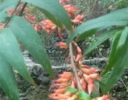 细叶萼距花 小灌木,分枝多而铺散,长30-40厘米。叶对生,卵状披针形,长3-4厘米。花单生于叶腋,筒状花的花萼基部一侧膨大成距状,鲜红色,口部白色。