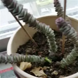 花椿 (学名:Crassula ‘Emerald’),又称玉梓。景天科,青锁龙属。杂交种,母本为玉椿,父本为苏珊乃(C. susannae)。叶片翠绿上覆极短柔毛,叶片交互对生;花开乳白色,五瓣,花朵簇生。