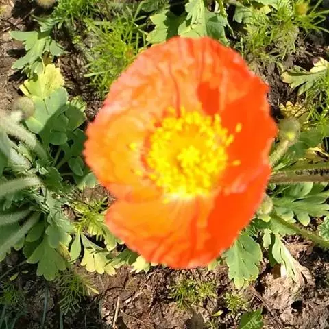 野罂粟 Banfi, Bartolucci, J.-M.Tison & Galasso)是罂粟科、高山罂粟属多年生草本植物。株高20-50厘米,具乳汁,全体被粗毛。叶生基生,具长柄;叶片轮廓卵形或长卵形、狭卵形或披针形,先端钝圆,两面疏生微硬毛。花单独顶生。萼片2,广卵形,被棕灰色硬毛,花开后脱落。花瓣4,桔黄色,倒卵形至宽倒卵形,具微波状缺刻。雄蕊多数,花丝丝状;子房具棱,柱头5-9裂。蒴果,狭倒卵形,密被视而长的硬毛,顶孔开裂。种子细小,多数。花期6-7月,果期8月。生于海拔580-3500米的林下、林缘、山坡草地。两半球的北极区及中亚和北美等地有分布。原产地俄罗斯;引入阿拉斯加、格陵兰岛和中国多地。