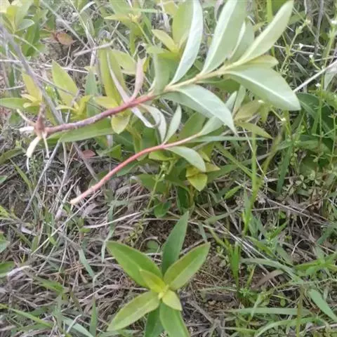 叶6至多枚在茎端密聚成轮生状,在茎下部各节3-4枚轮生或对生,很少互生,叶片披针形至狭披针形,长2-5.5 (11) 厘米,宽5-12 (25) 毫米,先端渐尖或稍钝,基部楔形,无柄或近于无柄,两面均被多细胞柔毛。