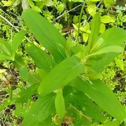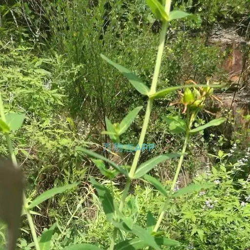 多年生草本,高0.5-1.3米。茎直立或在基部上升,单一或数茎丛生,不分枝或上部具分枝,有时于叶腋抽出小枝条,茎及枝条幼时具4棱,后明显具4纵线棱。叶无柄,叶片披针形、长圆状披针形、或长圆状卵形至椭圆形、或狭长圆形,长(2-)4-10厘米,宽(0.4-)1-2.7(3.5)厘米,先端渐尖、锐尖或钝形,基部楔形或心形而抱茎,全缘,坚纸质,上面绿色,下面通常淡绿色且散布淡色腺点,中脉、侧脉及近边缘脉下面明显,脉网较密。